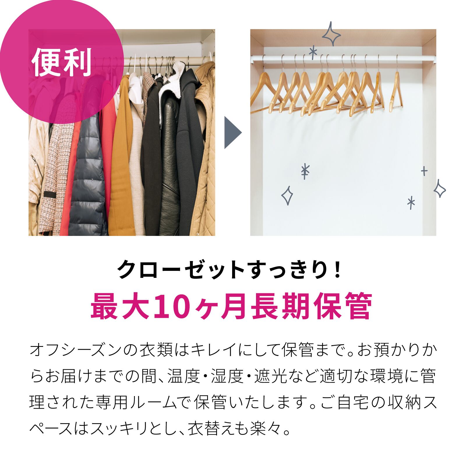 ・すべての保管プランは配達送料無料、さらにシミ抜き無料・長期保管無料などの8つの無料サービスをご利用いただけます。